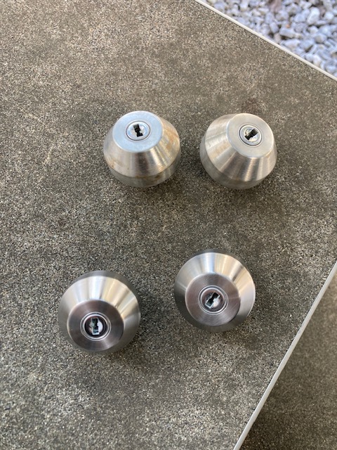 前回お伺いした際は勝手口まで交換しなくても良いとの事で見送ったのですが、やはり防犯面で不安との事でお伺いさせて頂きました。